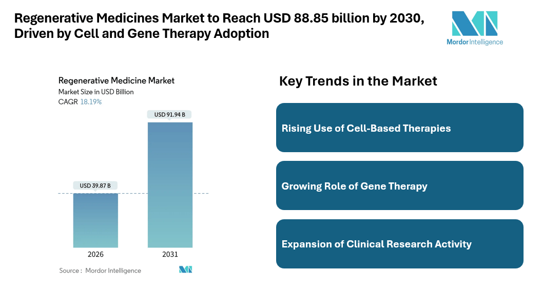 Mordor Intelligence has published a new report on regenerative medicines market, offering a comprehensive analysis of trends, growth drivers, and future projections.